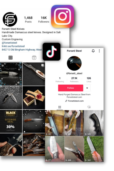 With social media management, we leveraged Instagram to create beautiful photo imagery of Forseti Steel knives and increase how often posts are published along with hashtag research. We followed Forseti Steel’s brand which consists of dark, low-light content, to keep the brand representation going. Showcase clips and videos were created for TikToks platform as most of the viewers are men.